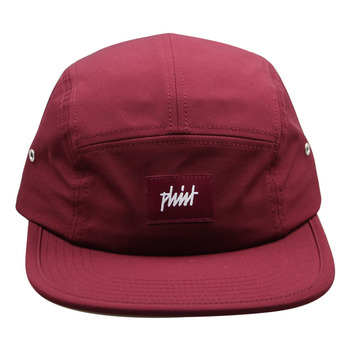 Aangepaste Bordeauxrode 5-Panel Geweven Patch Hoed Waterdichte Stof Modieuze Stijl Voor Sport Hardloopkamp Buiten Gebruik